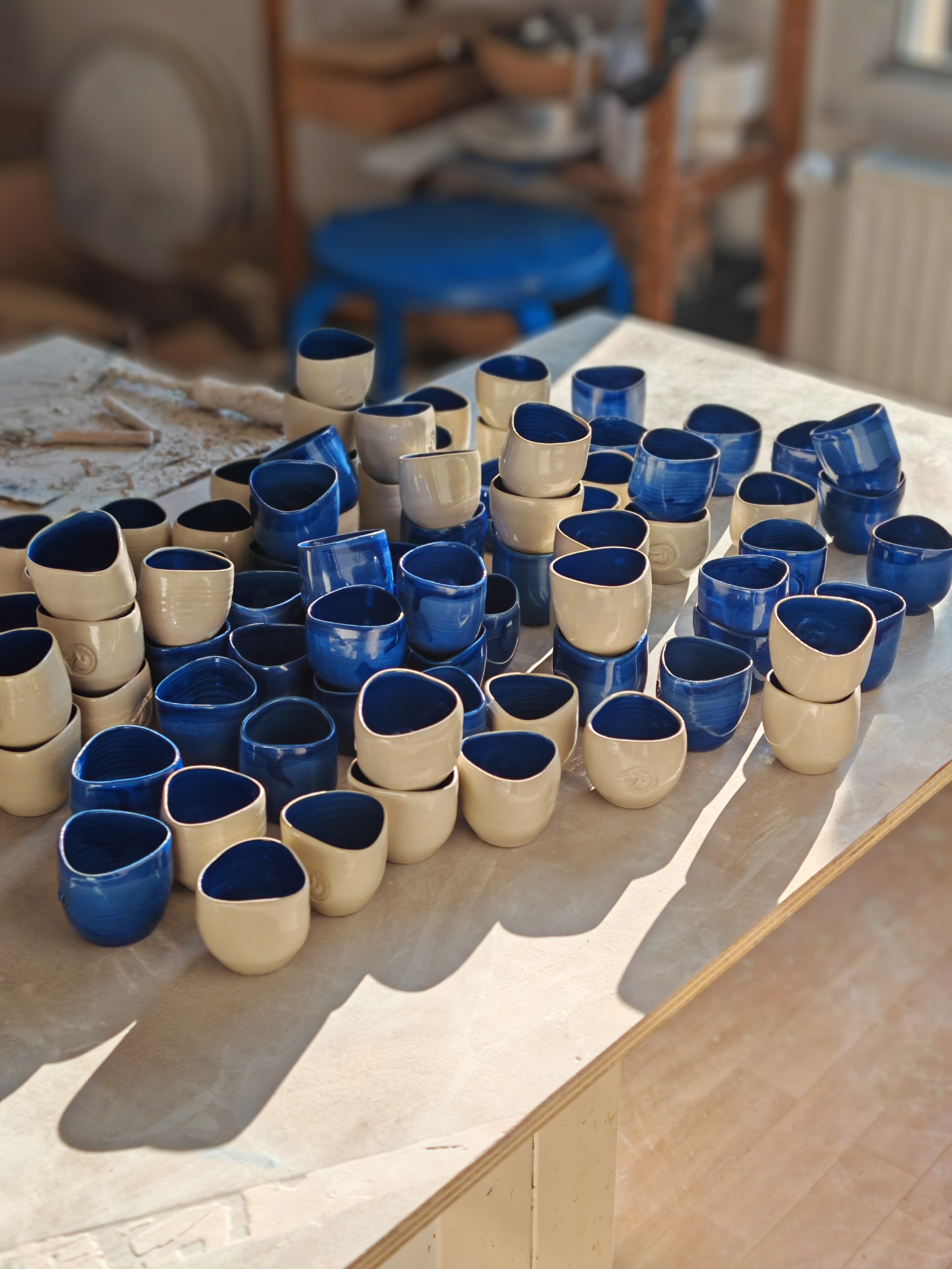 J’ai également réalisé 500 verres à vodka pour Kaviari, en collaboration avec le studio Pensez Design, en 2024 (photographie ci-dessous).