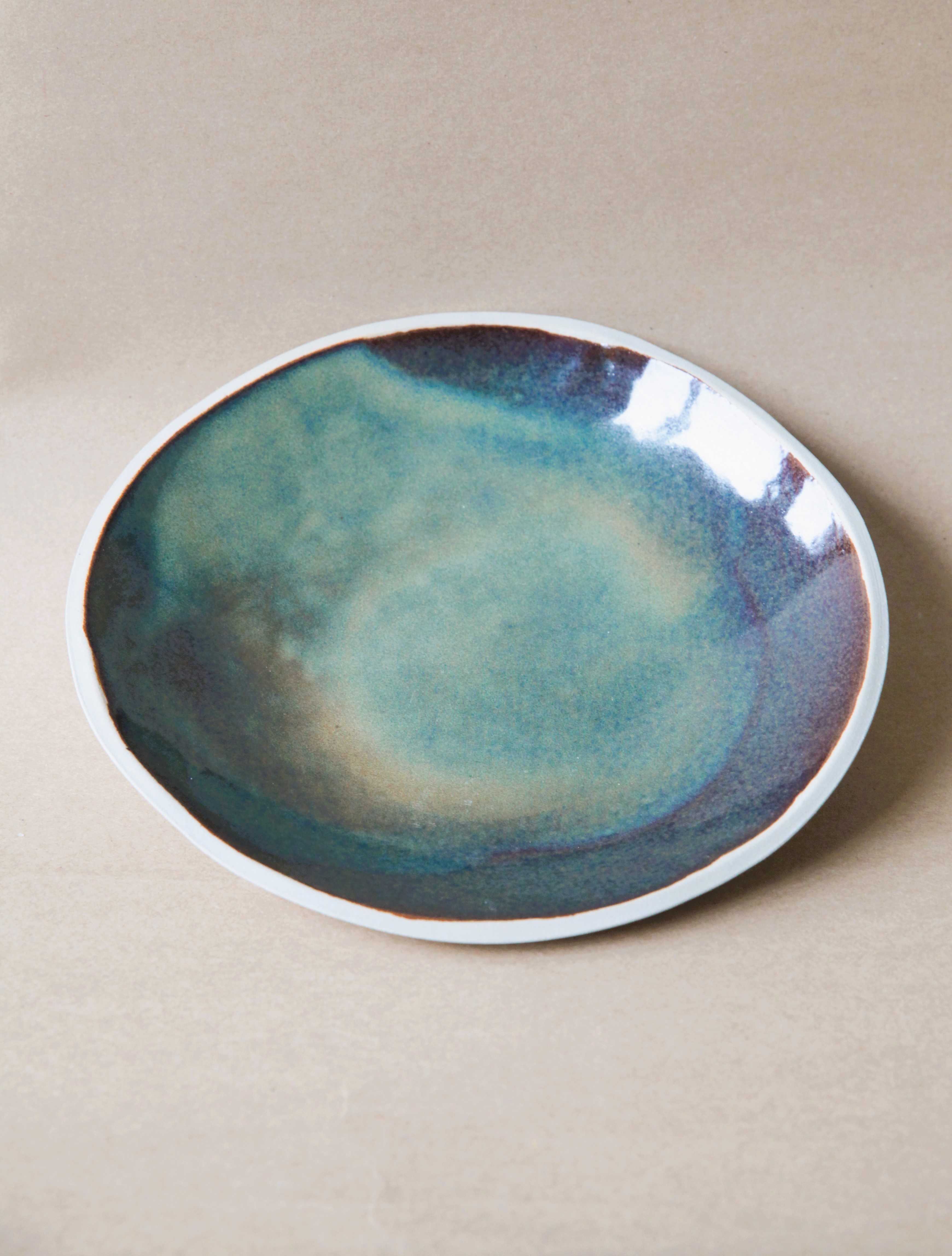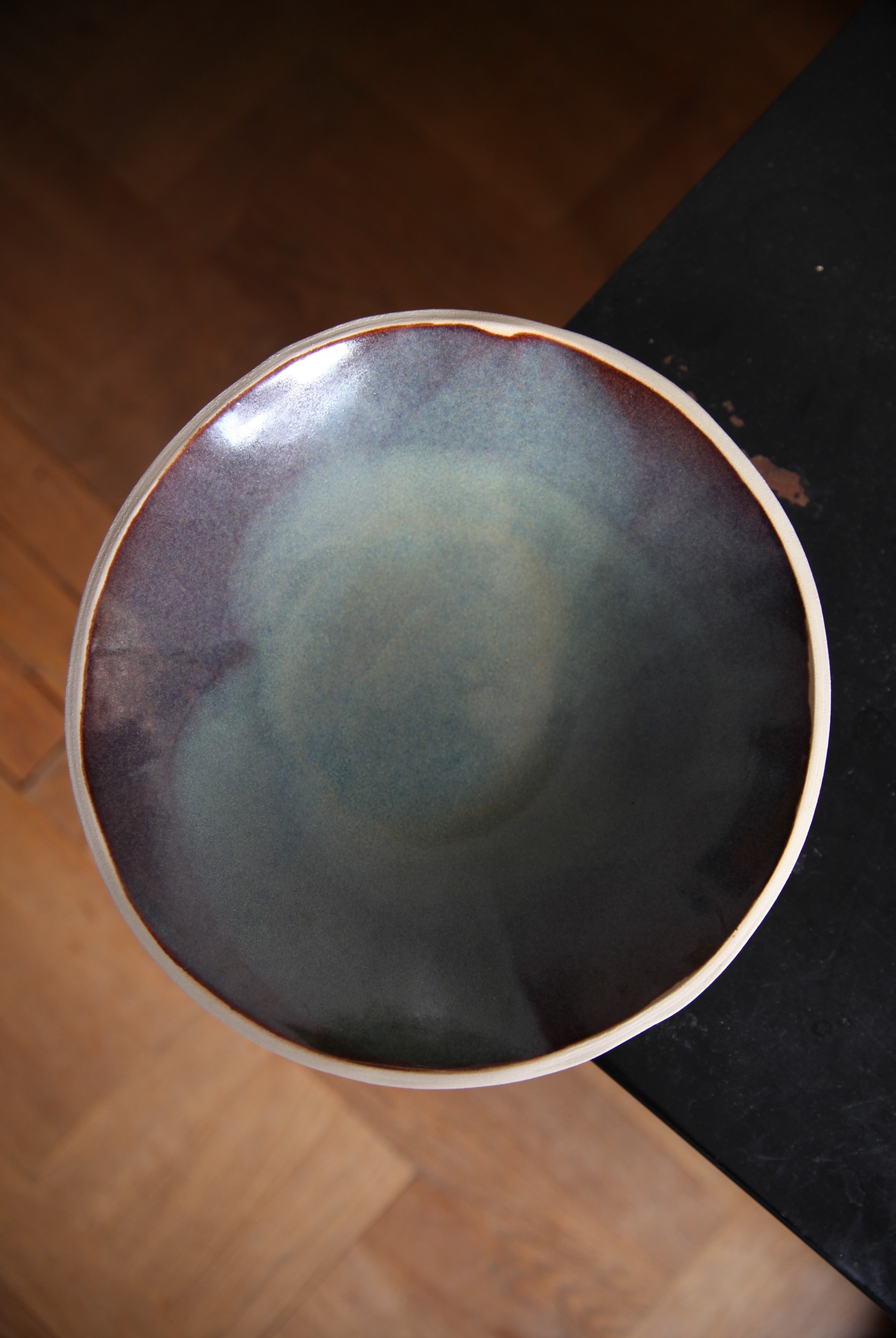 Grès blanc, double cuisson, émail opale.