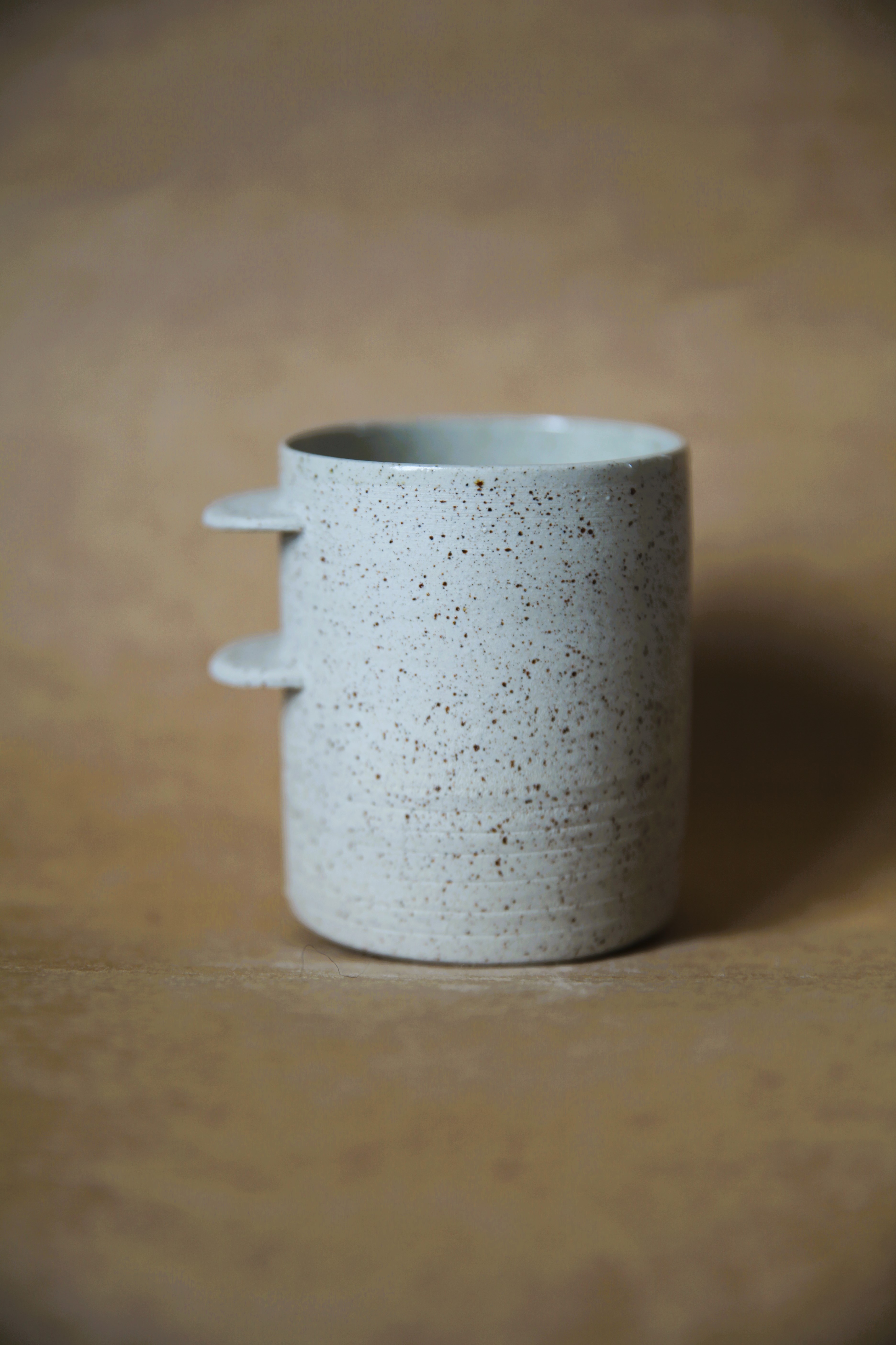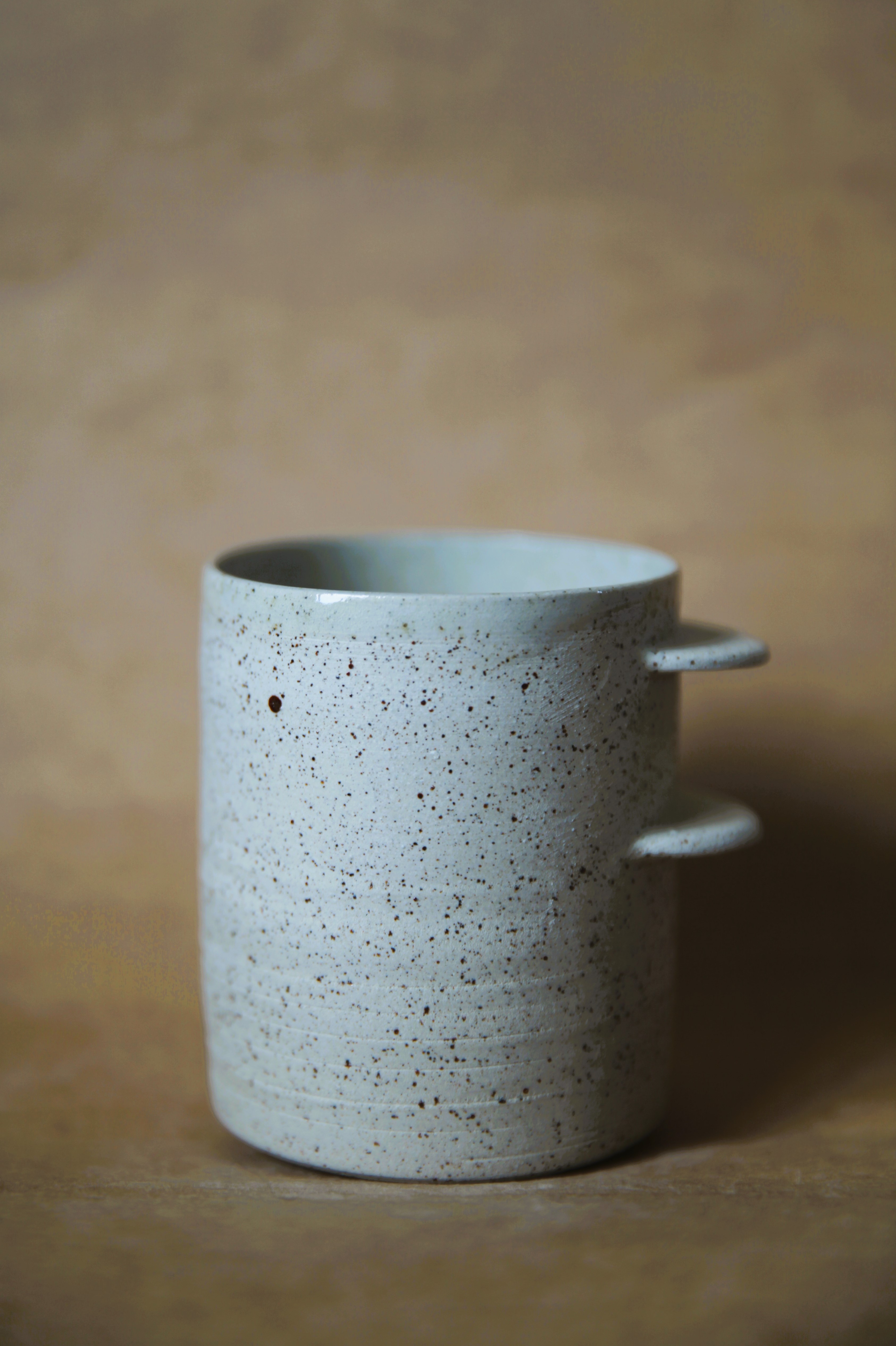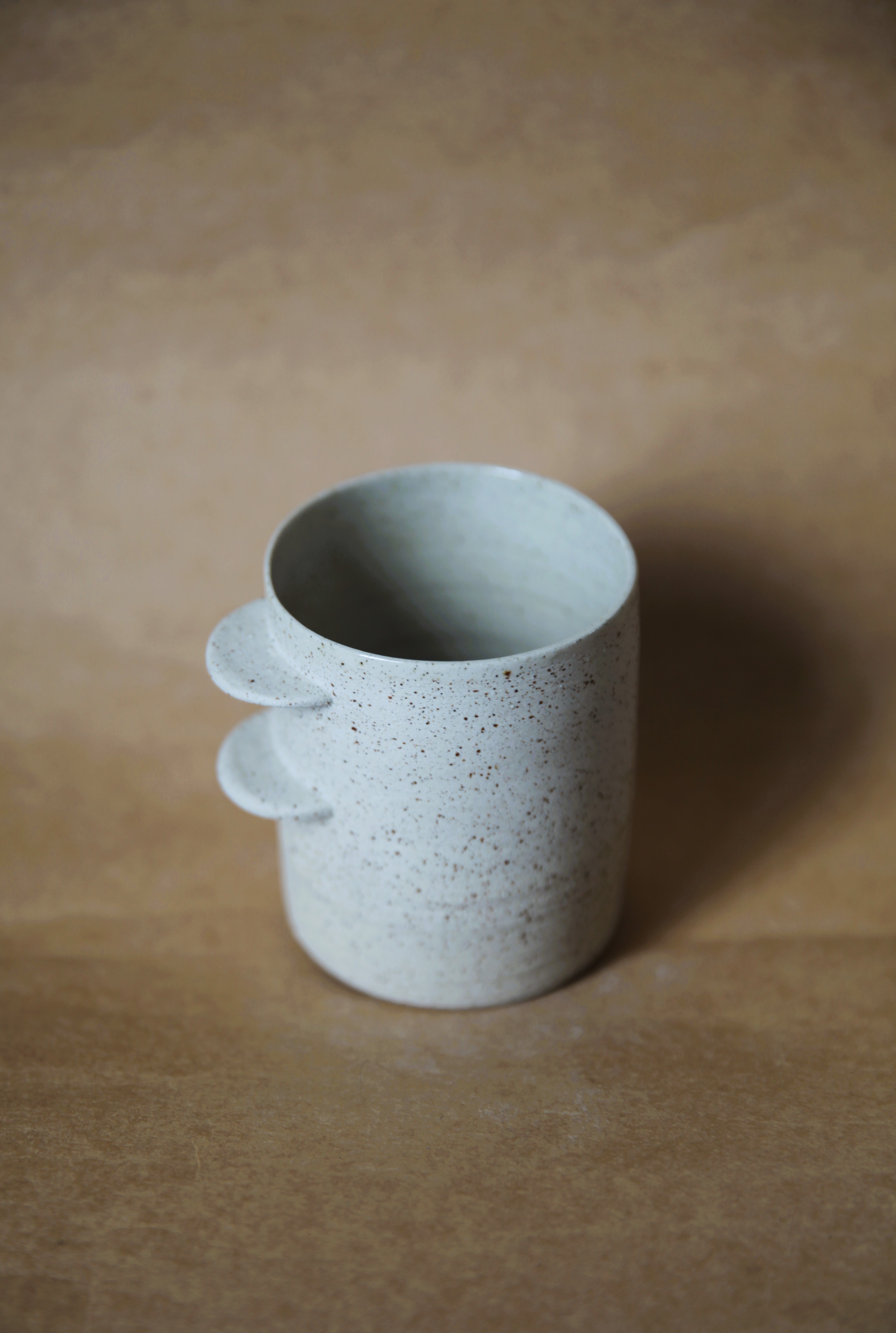 Grès blanc, double cuisson, émail transparent brillant à l’intérieur.